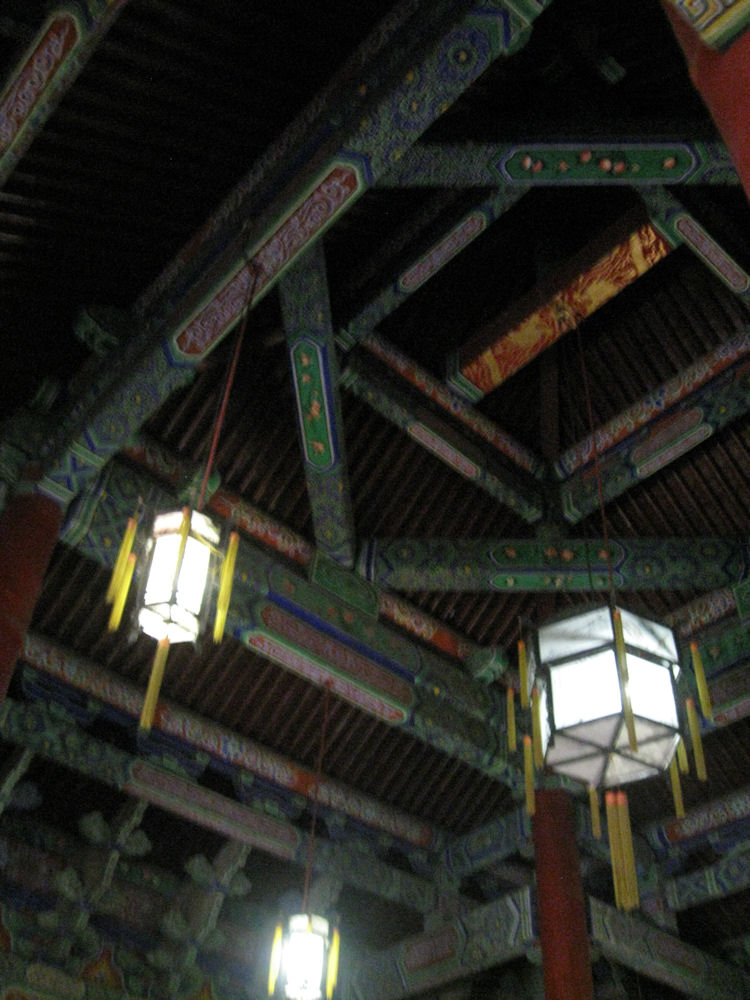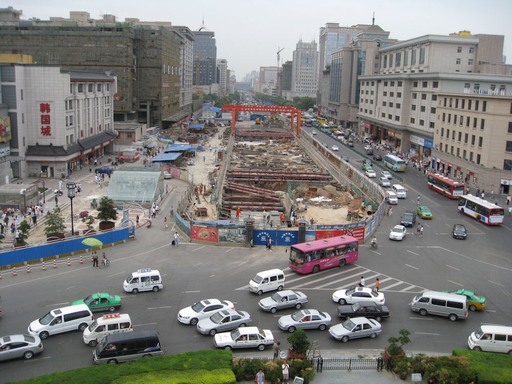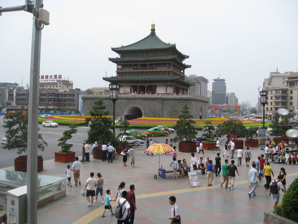 timber structure and close to 40 meters high.There are several legends regarding the Bell Tower, one of them tells: In Ming Dynasty, several earthquakes struck Guanzhong area, thousands are dead and injured. Then a legend appeared: There was a great river flowing across the center of Xi'an City. A dragon in the river was always active and caused trouble, so the earthquake happened. An official of Xi'an government believed these words, so he ordered the blacksmith of the whole city to make a several thousand feet long iron chain in order to lock the dragon and sink it to river. He then ordered 5,000 craftsmen to repair the Bell Tower day and night. In order, to use the tower to lock the dragon - the central of the city. He believes this should suppress the dragon firmly under the river and so it not longer can be active and cause trouble again. After establishing the Bell Tower, earthquake did not occur in Xi'an again. Source